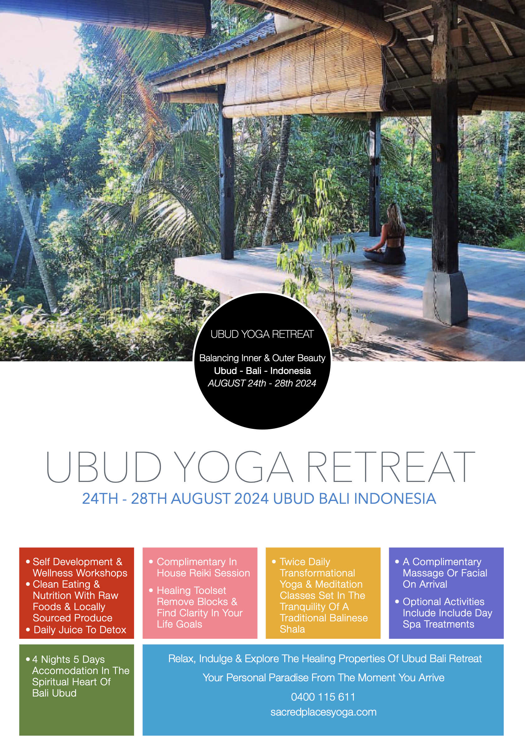 BOOK YOUR PLACE NOW by emailing bron@sacredplacesyoga.com or phone 0400 115 611