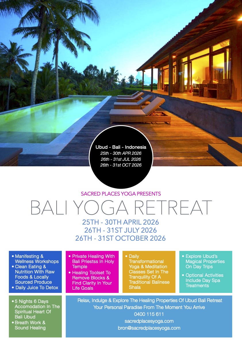 BOOK YOUR PLACE NOW by emailing bron@sacredplacesyoga.com or phone